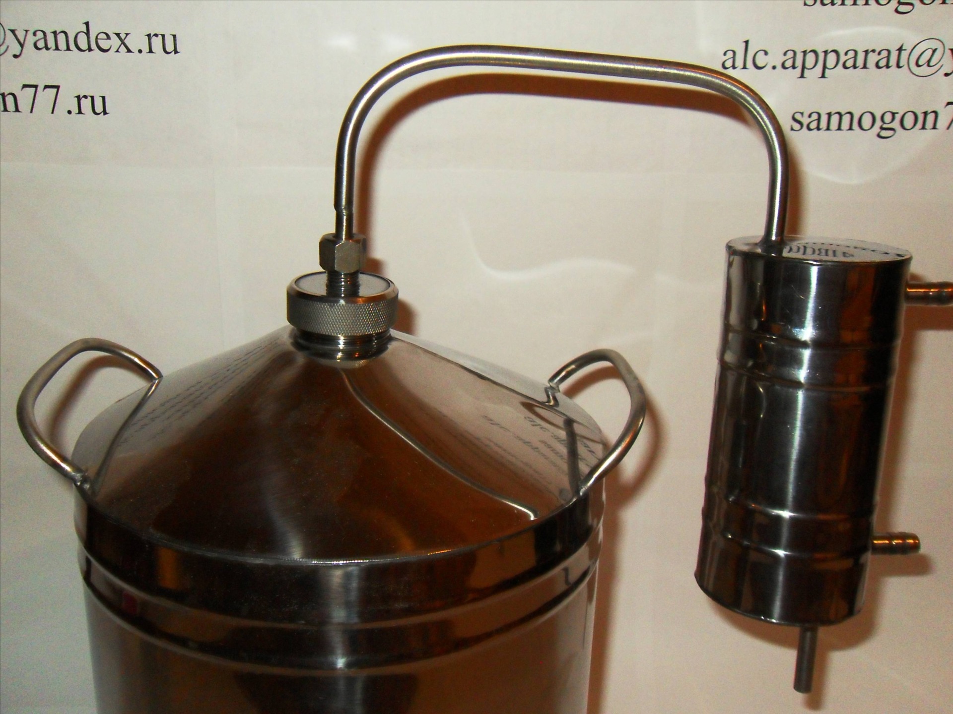 · Готовый для перегонки самогонный аппарат. С вертикальным охладителем.