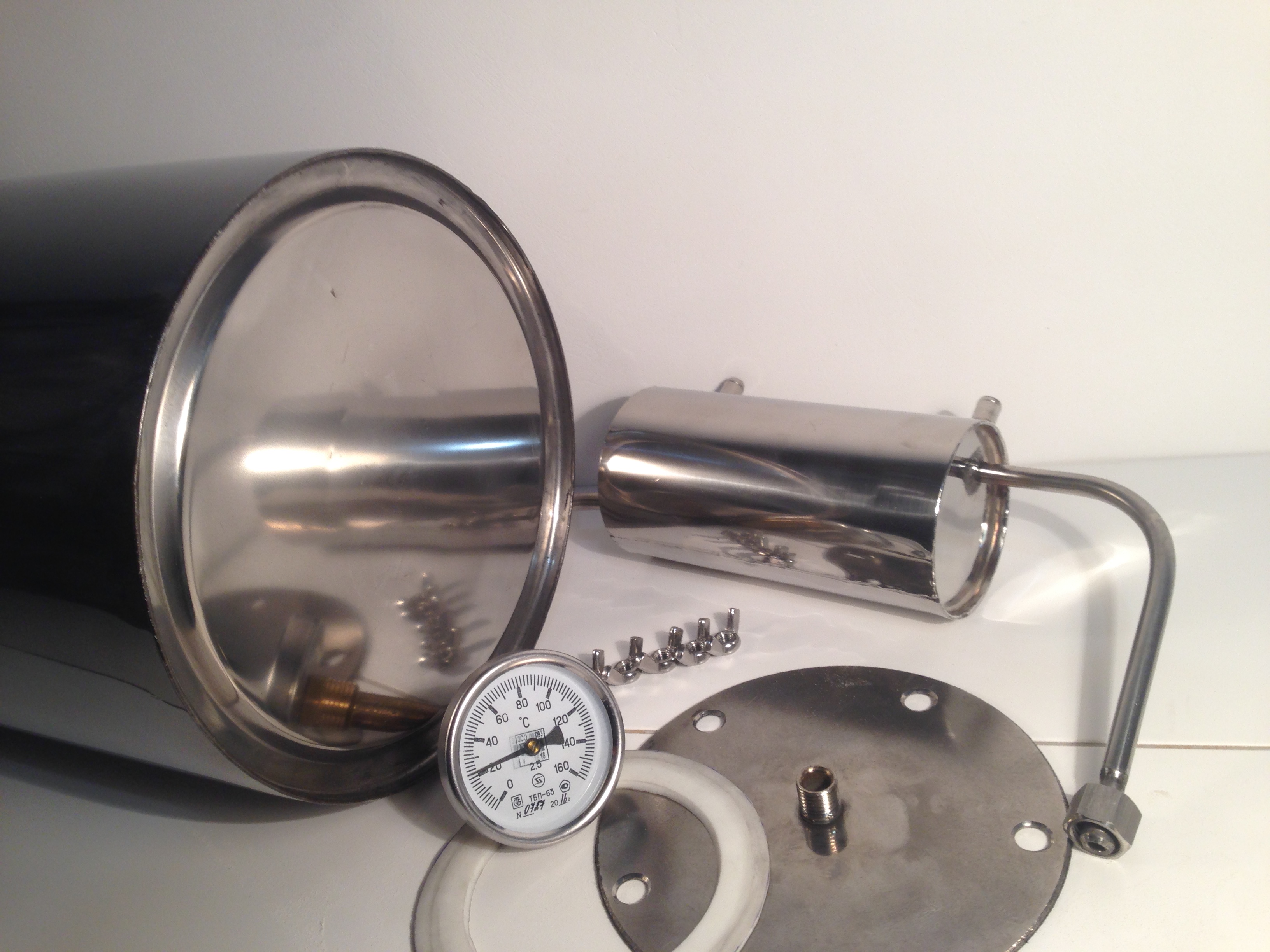 · Данный аппарат имеет большую горловину диаметром 110мм, это позволит вам мыть перегонный куб без лишних хлопот и заморочек, так как бывают случаи пригорания браги внутри куба.