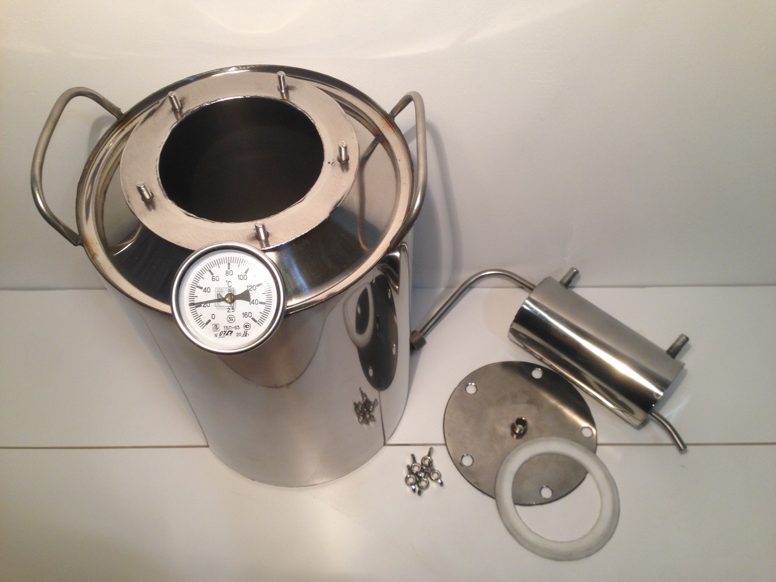 Самогонный аппарат 12 л «Эконом» с термометром – полностью разборное устройство для получения крепких алкогольных напитков.