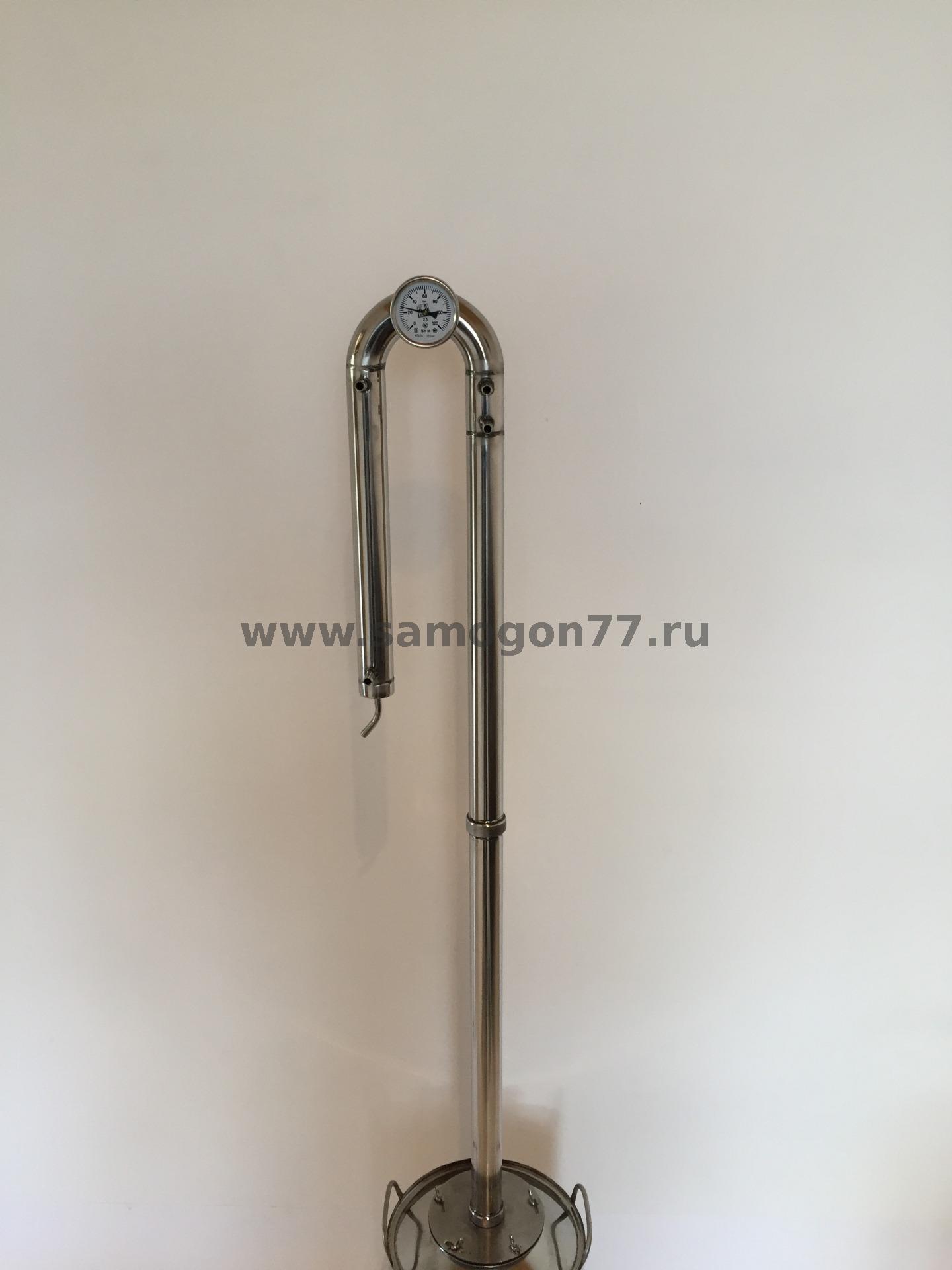 · Колонна имеет высоту 100см (50см (колонна) + 50см (доп.царга)) и заполнена специальной нержавеющей сеткой (регулярной проволочной насадкой Панченкова (РПН Панченкова), что позволяет увеличить степень очистки и получить более чистый продукт, фильтруя пары спирта и отсекая сивушные масла.