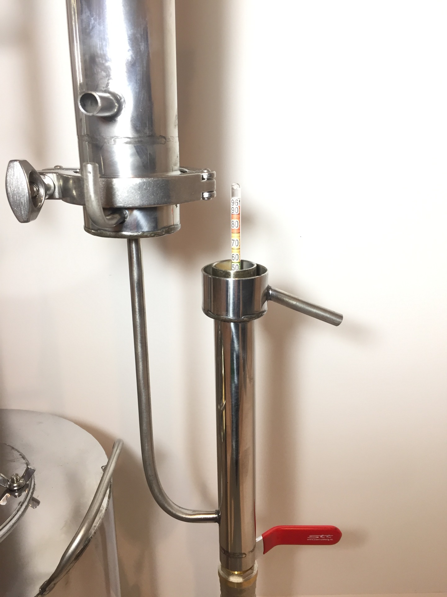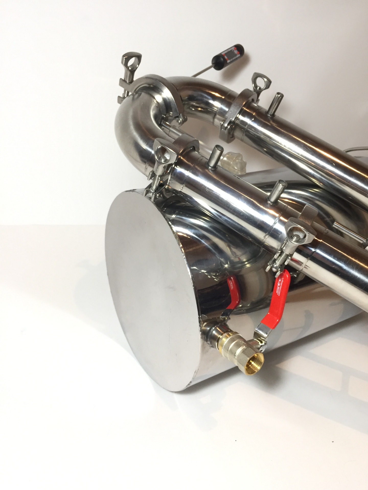 - Узел отбора встроен в верхний угол, при повороте в режим "Ректификационной колонны" дополнительный холодильник становится под узлом отбора и соединяется гибким шлангом.