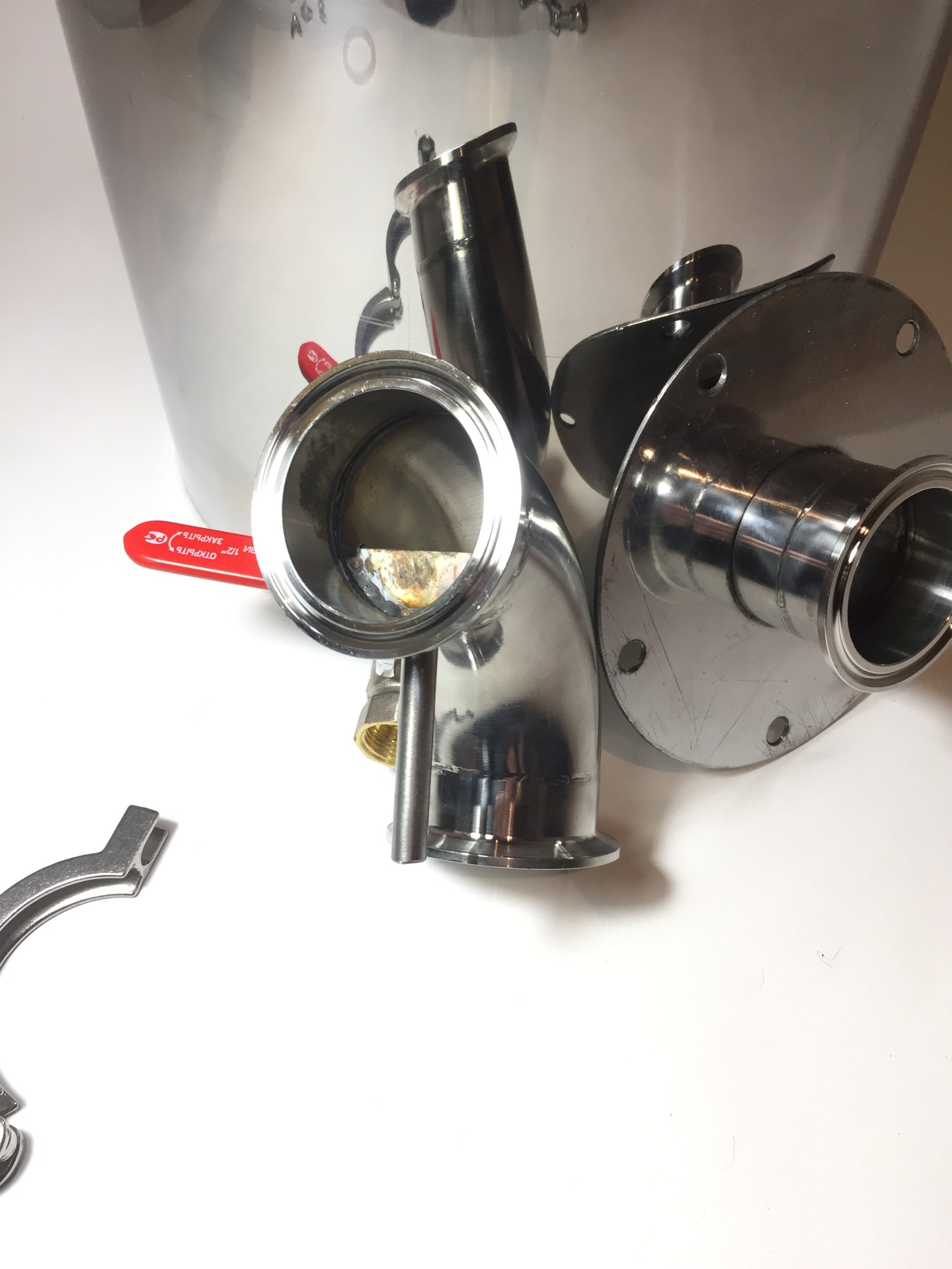 Возможна продажа отдельно от ёмкости "колонны в сборе" без фланца с хомутом и приварным кламповым соединением для установки на вашу ёмкость - 11990 рублей.