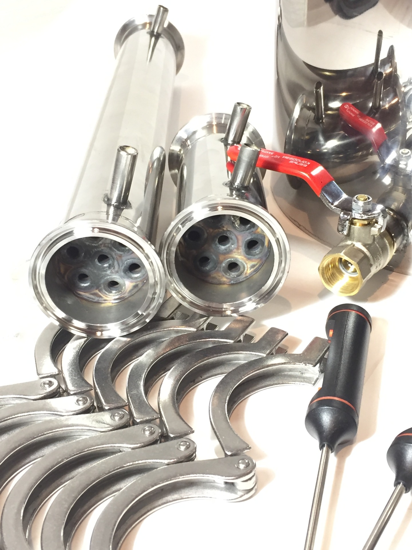 - Кламп соединения "2.0" с силиконовыми прокладками позволяют дополнить аппарат дополнительной колонной (царгой), диоптром и т.д.