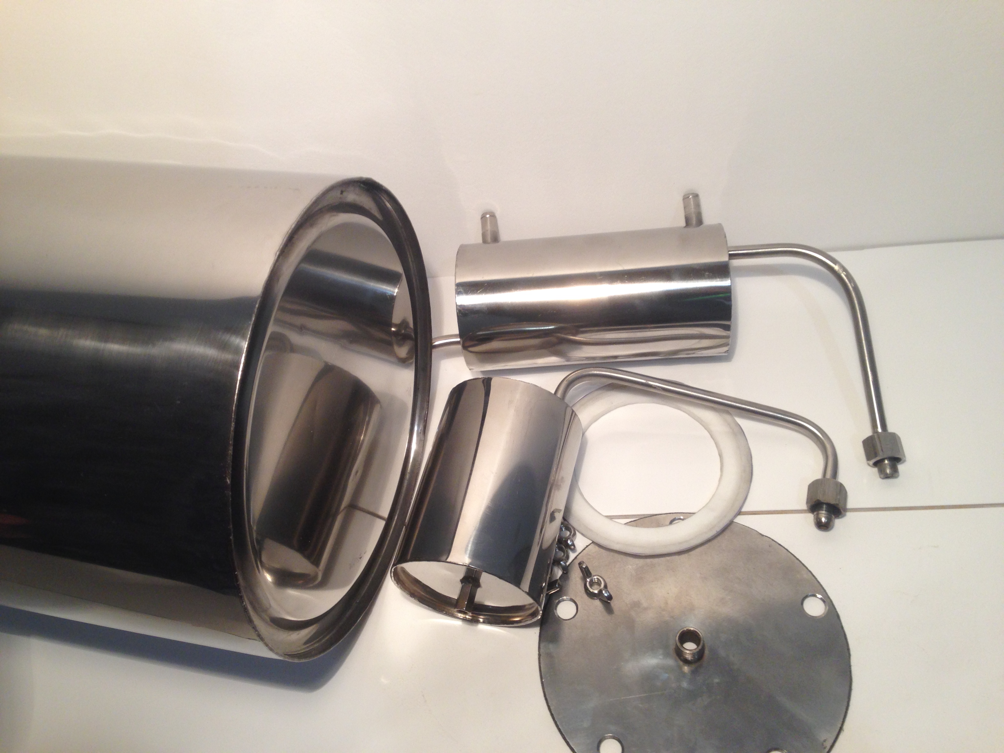 · Сухопарник имеет сливной штуцер для слива сивухи, что позволяет ускорить весь процес перегонки, вам не придется постоянно разбирать конструкцию в связи с переполнением сухопарника.